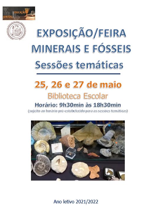 Nos dias 25, 26 e 27 de maio vai estar patente, na Biblioteca Escolar da Escola EB 2-3 Dr. João de Barros, uma Exposição/Feira de Minerais e Fósseis, com sessões temáticas para os 5,º e 7,º anos, promovida pelo Departamento de Matemática e Ciências Experimentais. O horário de visita da exposição será das 9h30min às 18h30min, mediante calendário pré-estabelecido, podendo ser visitada pelos Encarregados de Educação no dia 25, das 17 às 18h00min e nos dias 26 e 27, das 18 às 18h30min.