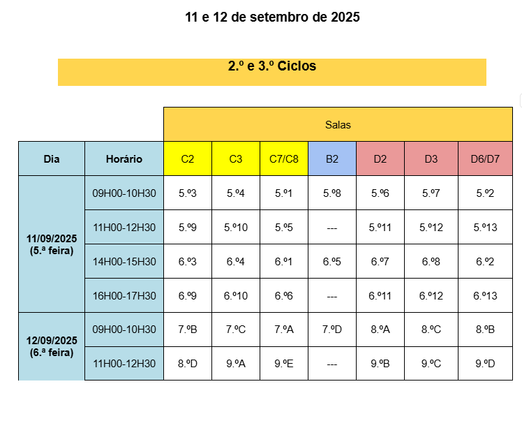 Receção aos Pais/Encarregados de Educação aos Alun@s by admin · 02/09/2025 11 e 12 de setembro de 2025 – 2.º e 3.º Ciclos by